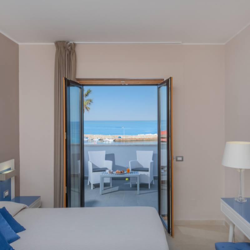 La vista sul mare cristallino di San Marco di Castellabate accompagna il soggiorno, mentre l’atmosfera dell’hotel invita a vivere ogni giornata con semplicità.